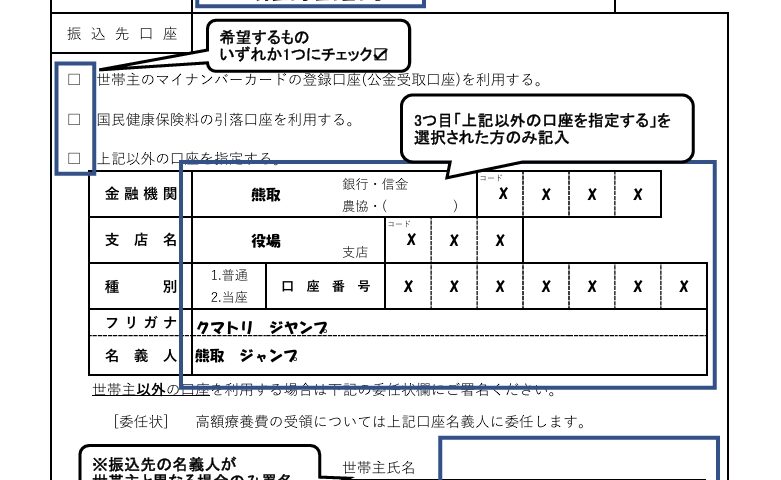なお、一度申請した口座には、国民健康保険に加入している世帯員全員分の高額療養費が振り込まれます。