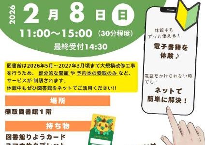 【熊取町】スマホで図書館をもっと便利に!2月8日に「図書館スマホ体験会」開催